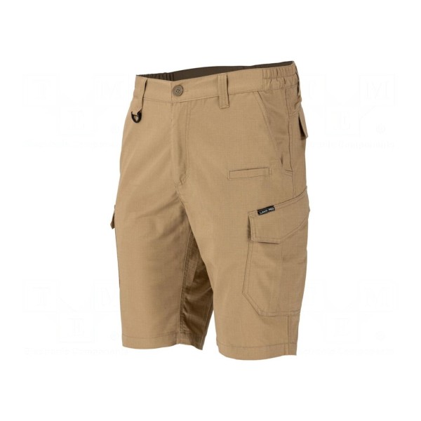 Spodenki ochronne wykonane z połączenia bawełny oraz poliestru charakteryzują się gramaturą materiału 220g/m². Model w wersji krótkiej o kroju slim-fit dostępny jest w kolorze beżowym i rozmiarze S.