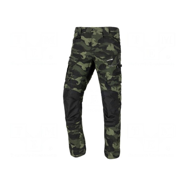 Spodnie robocze LAHTI PRO typu bojówki wykonano z mieszanki bawełny oraz poliestru o gramaturze 255g/m². Produkt charakteryzuje się krojem typu slim-fit oraz zastosowaniem wzmocnionej konstrukcji, co wpływa na jego trwałość podczas użytkowania. Dostępne są w kolorystyce moro z odcieniami zieleni w rozmiarze XL.