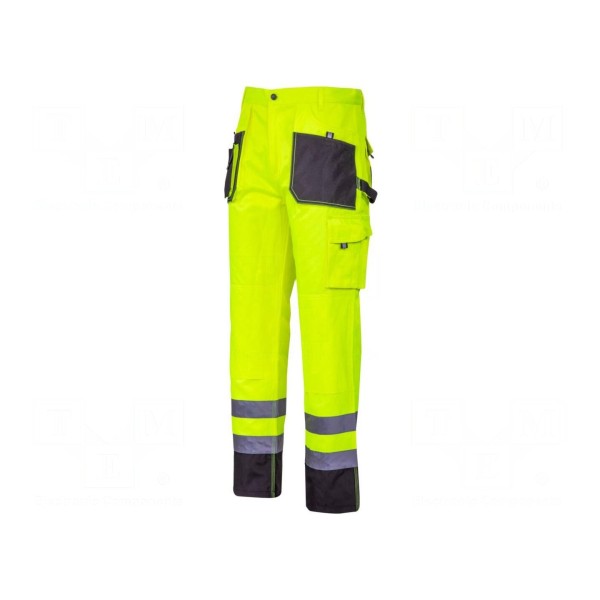 Odzież spełnia wymogi norm CE oraz EN ISO 20471 w klasie 2. Wyposażenie spodni obejmuje dziewięć kieszeni, co zwiększa funkcjonalność elementu ochrony osobistej w warunkach roboczych.