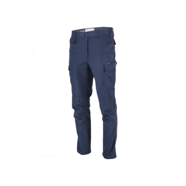 Odzież posiada łącznie osiem kieszeni, co pozwala na organizację drobnych akcesoriów potrzebnych podczas wykonywanych czynności. Produkt utrzymany jest w kolorze granatowym i posiada rozmiar S.