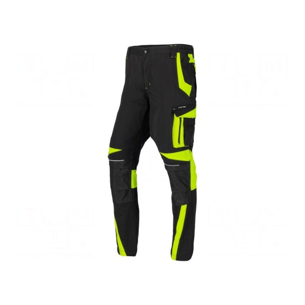 Spodnie robocze wykonane z mieszanki bawełny i poliestru o gramaturze 270g/m². Produkt dostępny w rozmiarze L oraz kolorystyce czarno-żółtej.