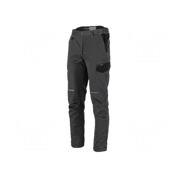 Konstrukcja spodni w kolorystyce szaro-czarnej została wyposażona w sześć kieszeni zapewniających miejsce na podręczne narzędzia lub akcesoria. Bezpieczeństwo użytkownika poprawiają zintegrowane pasy odblaskowe. Produkt posiada certyfikat CE.