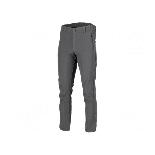 Spodnie soft-shell wykonane zostały z połączenia nylonu oraz elastanu o gramaturze 240g/m². Model ten charakteryzuje się krojem slim-fit oraz szarą kolorystyką, zapewniając elastyczność dzięki zastosowaniu materiału STRETCH.