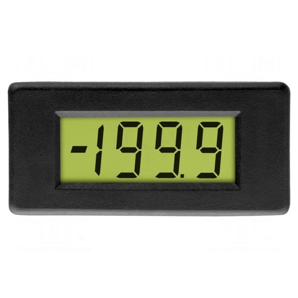 Cyfrowy woltomierz montażowy przeznaczony jest do pomiaru napięcia stałego w zakresie od 0 do 200 mV. Urządzenie wyposażone jest w czytelny wyświetlacz LCD o wysokości znaku 5,5 mm, prezentujący wynik w formacie 3,5 cyfry z częstotliwością próbkowania 2,5 razy na sekundę. Dokładność pomiarowa wynosi ±(0,1% + 1 digit), co zapewnia precyzyjną kontrolę parametrów układów elektronicznych.