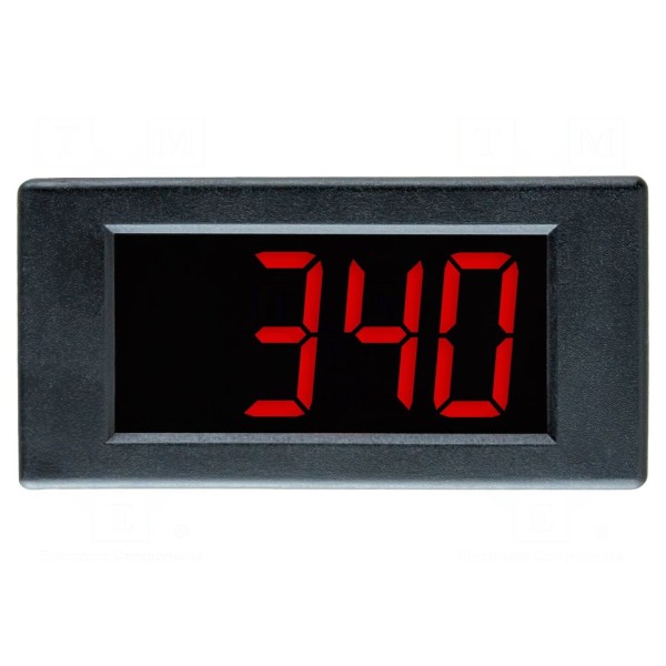 Przyrząd wyposażony jest w wyświetlacz LED o wysokości znaku 8mm, który prezentuje wyniki w formacie 3,5 cyfry. Zastosowane funkcje obejmują automatyczną zmianę polaryzacji, automatyczne zerowanie oraz możliwość wyboru miejsca przecinka na wyświetlaczu.