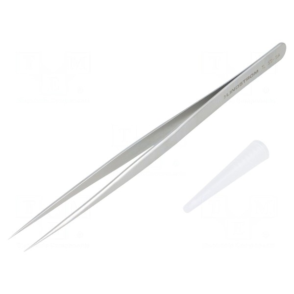 Pęseta prosta o długości 140 mm została wykonana ze stali nierdzewnej. Narzędzie wyposażone jest w ostre, zwężone końcówki oraz gładkie powierzchnie chwytające, co umożliwia operowanie na małych elementach.