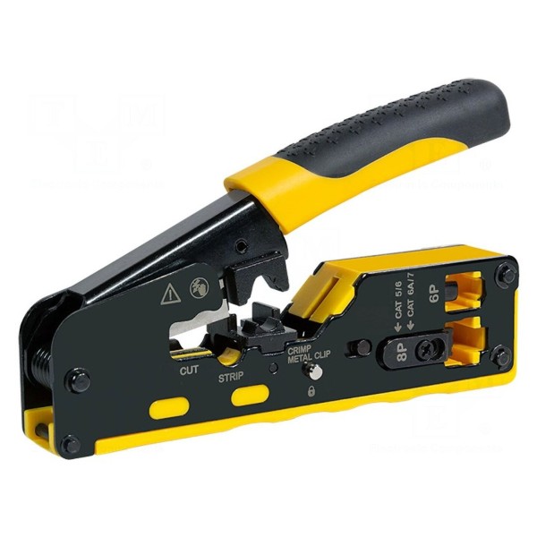 Model ten wyposażony jest w funkcje umożliwiające cięcie oraz odizolowywanie przewodów przed etapem finalnego zaciskania końcówek. Dzięki zintegrowaniu tych operacji narzędzie usprawnia proces przygotowania okablowania telekomunikacyjnego.