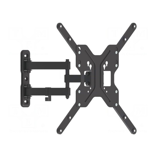 Model ten jest kompatybilny ze standardem VESA w zakresach 75x75mm, 100x100mm, 200x100mm, 200x200mm, 300x300mm oraz 400x400mm. Całość wykonana jest w kolorze czarnym, co pozwala na dyskretną integrację z otoczeniem.