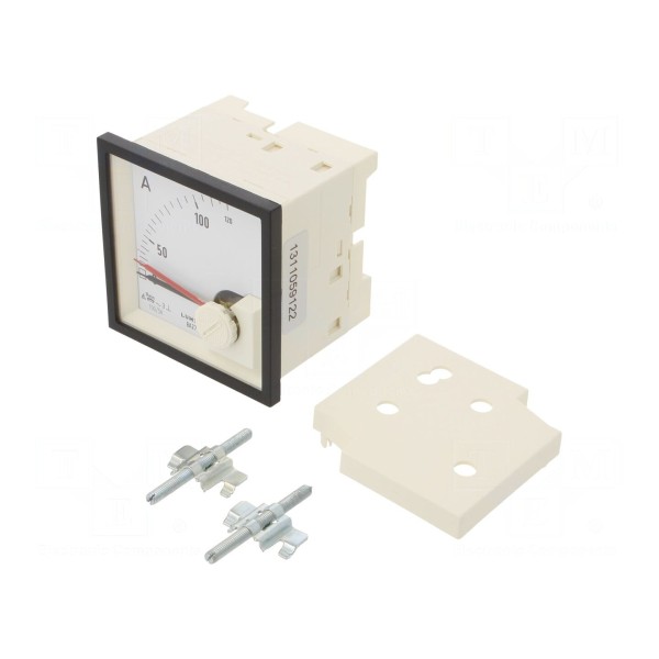 Amperomierz analogowy przeznaczony do montażu na panelu, przystosowany do pomiaru prądu przemiennego w zakresie od 0 do 100A. Urządzenie realizuje pomiar pośredni z wykorzystaniem przekładnika prądowego 5A przy maksymalnym napięciu pracy wynoszącym 300V. Przyrząd posiada klasę dokładności 3 oraz stopień szczelności IP40, co pozwala na zastosowanie w warunkach standardowych instalacji przemysłowych.