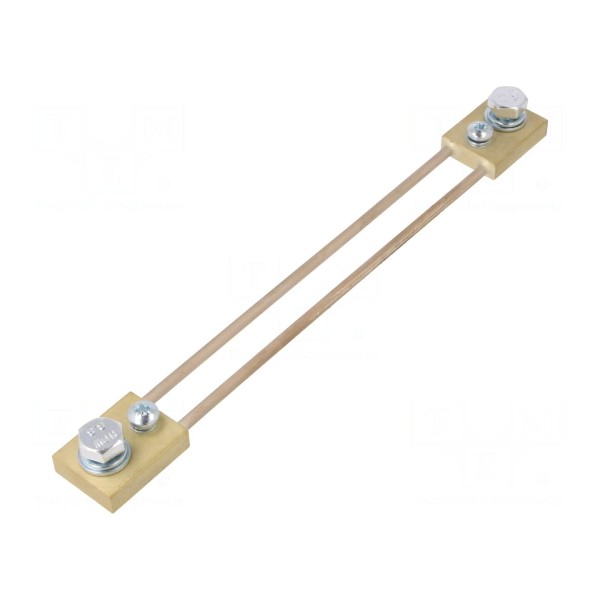 Konstrukcja urządzenia zapewnia klasę dokładności 0,2, co pozwala na wykorzystanie komponentu w układach wymagających precyzyjnego monitorowania przepływu prądu. Bocznik jest przeznaczony do montażu w obwodach elektrycznych w celu przekształcenia wartości prądu na proporcjonalny sygnał napięciowy.