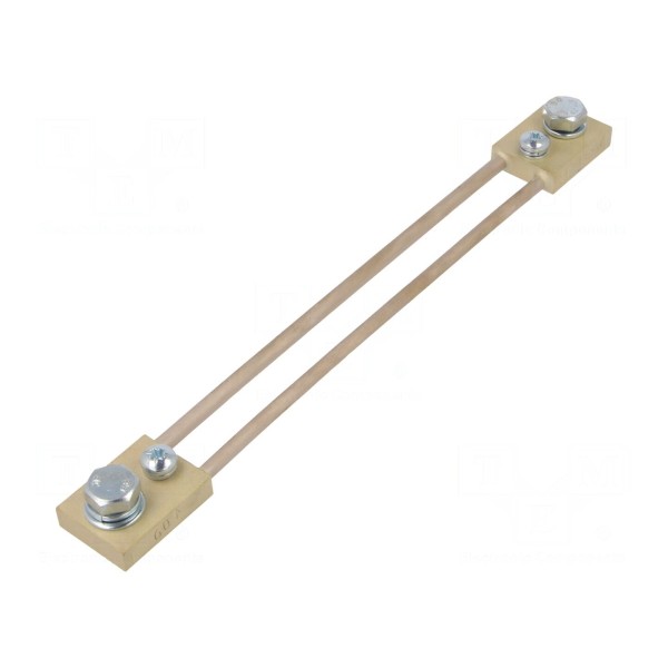 Bocznik prądowy służy do rozszerzenia zakresu pomiarowego układów kontrolnych i mierników. Element charakteryzuje się prądem znamionowym wynoszącym 60A oraz spadkiem napięcia na poziomie 0,15V.