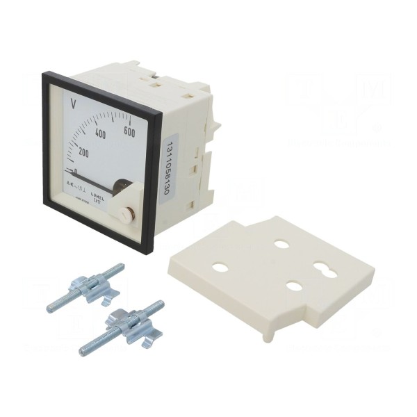 Woltomierz analogowy przeznaczony do montażu panelowego służy do pomiaru napięcia przemiennego w zakresie od 0 do 600V. Urządzenie obsługuje pomiar rzeczywistej wartości skutecznej (True RMS) w paśmie częstotliwości od 40 do 72Hz. Klasa dokładności przyrządu wynosi 1,5, co zapewnia precyzyjny odczyt wskazań na skali o długości 63mm.