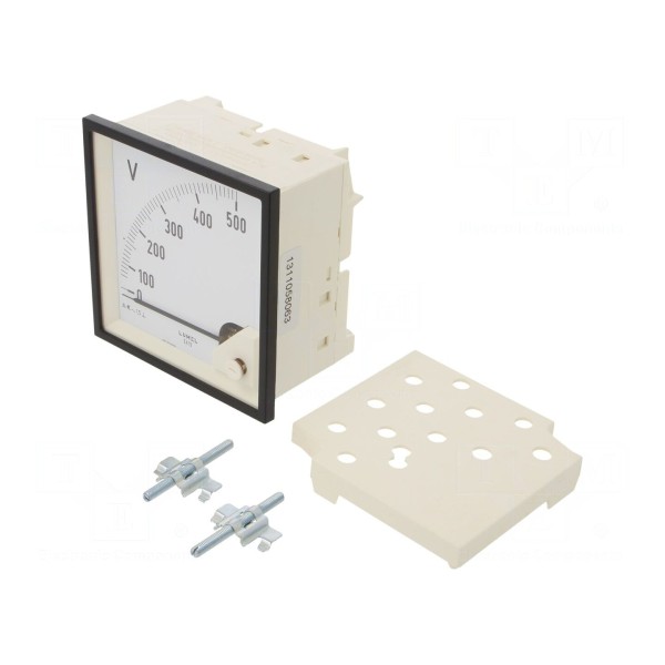 Woltomierz analogowy przeznaczony do montażu panelowego służy do pomiaru napięcia przemiennego w zakresie od 0 do 500V. Urządzenie charakteryzuje się obsługą rzeczywistej wartości skutecznej (True RMS) oraz pracuje w paśmie częstotliwości od 40 do 72Hz. Klasa dokładności miernika wynosi 1,5, co zapewnia precyzyjny odczyt parametrów sieci elektrycznej.