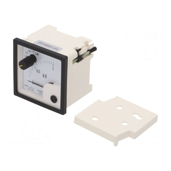 Woltomierz analogowy przeznaczony do montażu panelowego umożliwia pomiar napięcia w sieciach 3-fazowych 3- oraz 4-przewodowych. Urządzenie zapewnia pomiar rzeczywistej wartości skutecznej True RMS w zakresie od 0 do 1kV. Konstrukcja przyrządu pozwala na współpracę z przekładnikiem napięciowym 100V oraz posiada wbudowany przełącznik wyboru fazy.