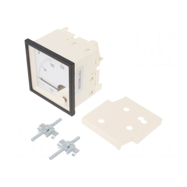 Analogowy woltomierz montażowy przeznaczony jest do pomiaru napięcia stałego w zakresie od 0 do 150V. Urządzenie charakteryzuje się klasą dokładności 1,5 oraz dopuszczalnym napięciem maksymalnym wynoszącym 0,6kV. Konstrukcja zapewnia stopień szczelności IP52 oraz posiada skalę o długości 61mm, przy zalecanej pozycji pracy 90°.