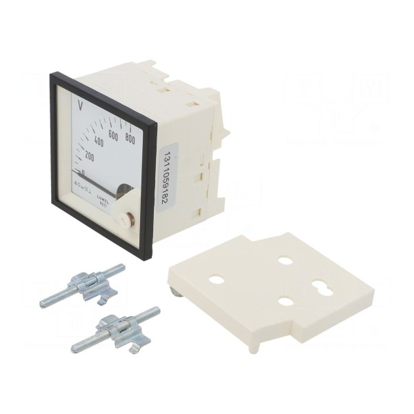 Analogowy woltomierz montażowy przeznaczony jest do pomiaru napięcia stałego w zakresie od 0 do 800V. Urządzenie charakteryzuje się klasą dokładności 1,5 oraz długością skali wynoszącą 61mm. Maksymalne napięcie pracy przyrządu wynosi 0,6kV, a jego konstrukcja przewiduje pozycję pracy 90°.