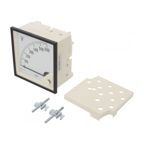 Woltomierz analogowy przeznaczony do montażu panelowego służy do pomiaru napięcia stałego w zakresie od 0 do 600V. Urządzenie charakteryzuje się klasą dokładności 1,5 oraz posiada skalę o długości 95 mm. Konstrukcja miernika przewiduje pozycję pracy 90 stopni, co zapewnia czytelny odczyt parametrów pracy w układach zasilania.
