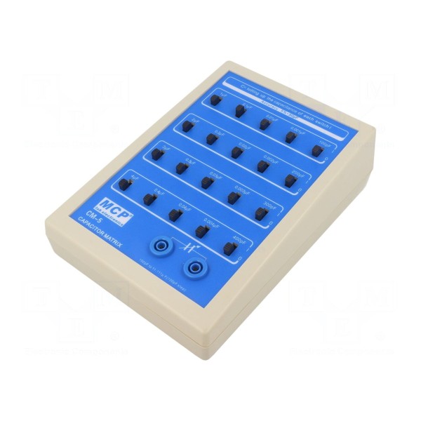 Dekada pojemnościowa MCP CM-5 to przyrząd laboratoryjny oferujący pięć zakresów pracy w przedziale od 0F do 11111nF. Urządzenie pozwala na precyzyjne ustawienie wartości pojemności z dokładnością pomiaru na poziomie ±1%.