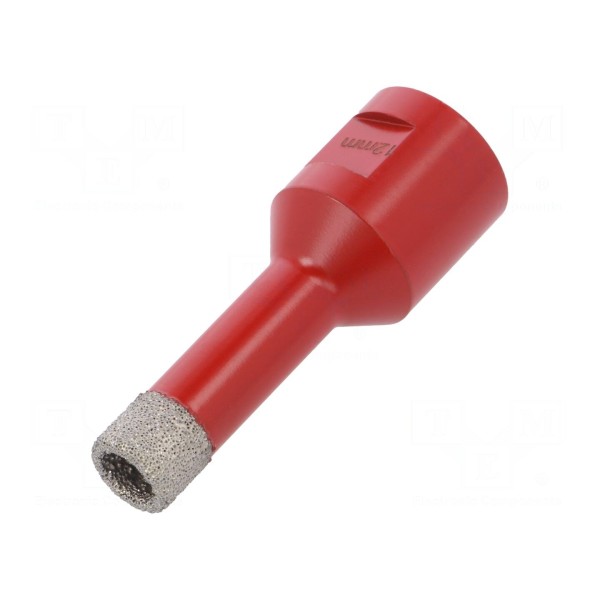 Otwornica diamentowa o średnicy 12 mm przeznaczona jest do wykonywania otworów w twardych materiałach kamiennych. Narzędzie zostało przystosowane do pracy w granicie oraz marmurze, oferując głębokość nacięcia wynoszącą 40 mm.