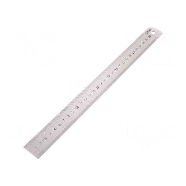 Przymiar o długości 0,3m i szerokości 30mm wykonany jest ze stali nierdzewnej. Narzędzie służy do wykonywania pomiarów liniowych oraz trasowania w warunkach warsztatowych.
