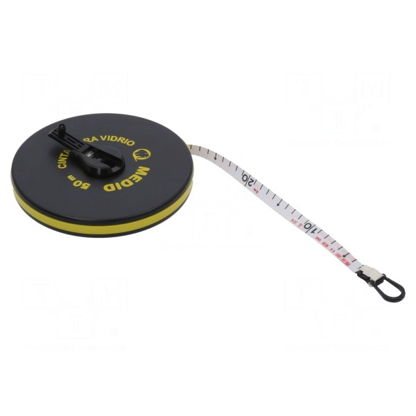 Taśma pomiarowa o długości 50 metrów została zaprojektowana do wykonywania pomiarów długości w warunkach technicznych. Szerokość taśmy wynosi 15 mm, co umożliwia czytelne odczytywanie wartości podczas pracy.