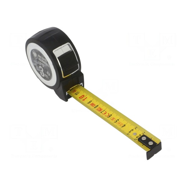 Taśma pomiarowa o długości 3 m oraz szerokości 19 mm przeznaczona jest do wykonywania precyzyjnych prac pomiarowych w budownictwie oraz warsztacie. Konstrukcja narzędzia pozwala na stabilne wysunięcie taśmy podczas odczytu wymiarów.