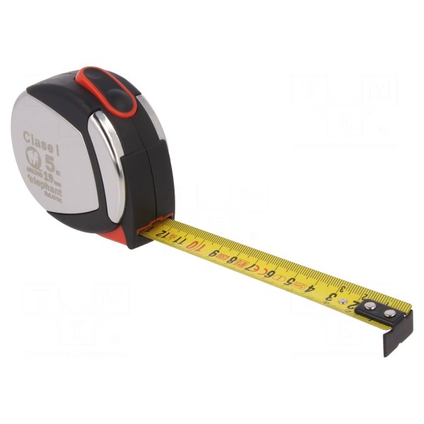 Taśma pomiarowa o długości 5 m i szerokości 19 mm przeznaczona jest do precyzyjnego wyznaczania odległości. Konstrukcja urządzenia wykonana została z połączenia elastolanu oraz stali nierdzewnej, co zapewnia odpowiednią trwałość materiału obudowy.