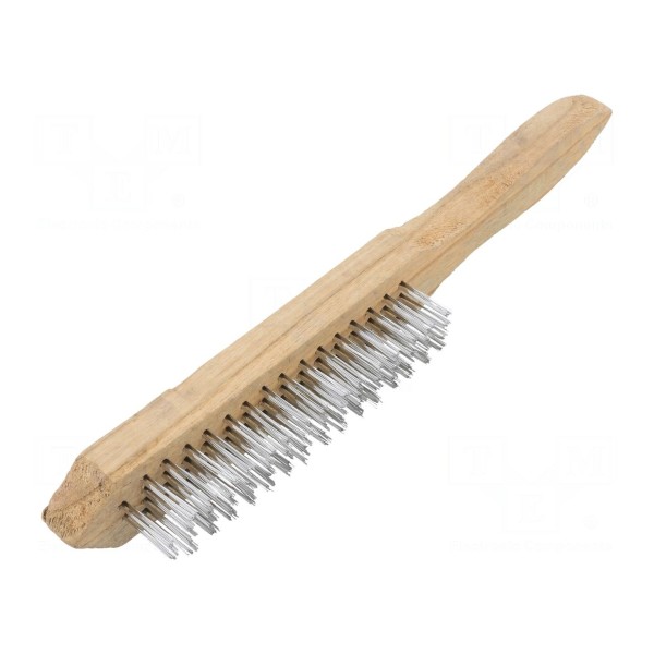 Szczotka wykonana z drutu ze stali cynkowanej, osadzonego w drewnianej rękojeści. Konstrukcja narzędzia posiada 4 rzędy drutu, co wpływa na charakterystykę powierzchni roboczej.