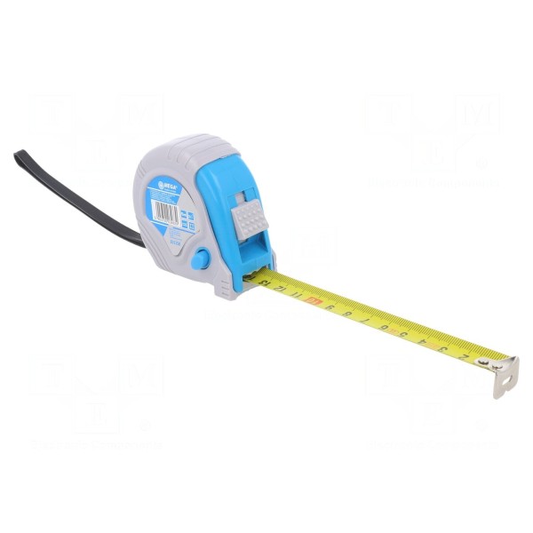 Taśma pomiarowa MEGA o nazwie handlowej miarka jest narzędziem pomiarowym o długości 5m. Urządzenie służy do wykonywania precyzyjnych pomiarów odległości w pracach technicznych i konstrukcyjnych.