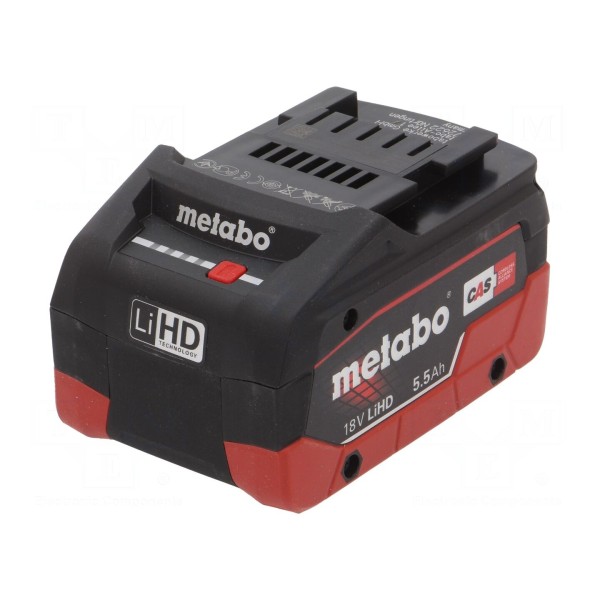 Akumulator wykonany w technologii Li-Ion przeznaczony jest do zasilania elektronarzędzi marki Metabo. Napięcie znamionowe ogniwa wynosi 18V, a jego pojemność to 5,5Ah.