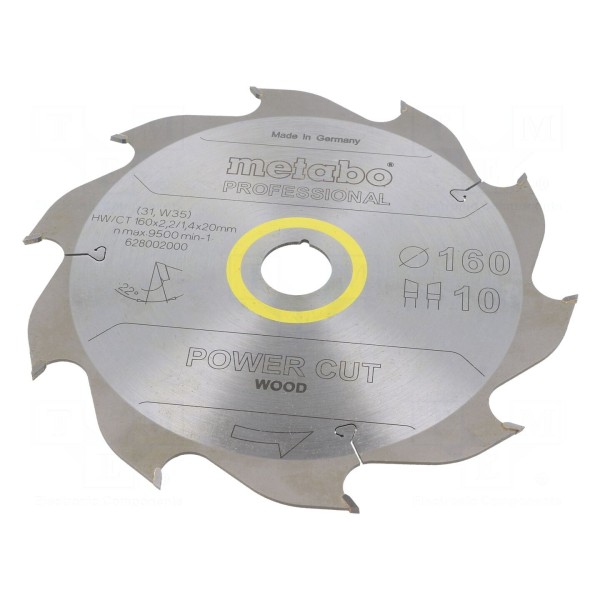 Piła tarczowa o średnicy 160 mm przeznaczona jest do obróbki drewna. Narzędzie zostało wyposażone w 10 zębów o grubości tarczy wynoszącej 2,2 mm, wykonanych z materiału typu HW/CT.