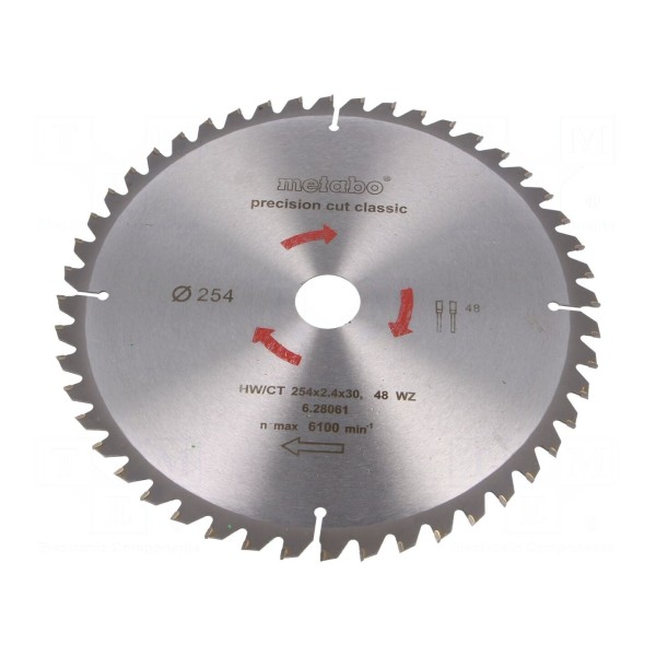 Piła tarczowa 254mm, 48 zębów, do drewna