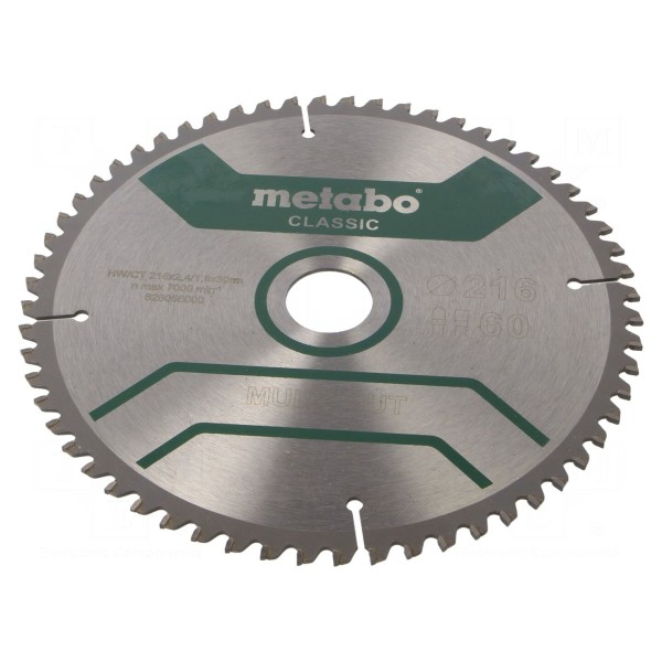 Piła tarczowa 216mm, 60 zębów, otwór montażowy 30mm