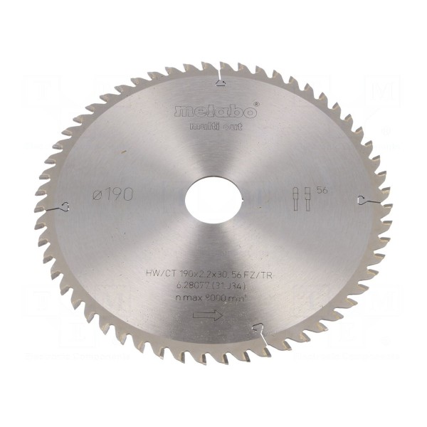 Piła tarczowa 190mm, 56 zębów, otwór montażowy 30mm