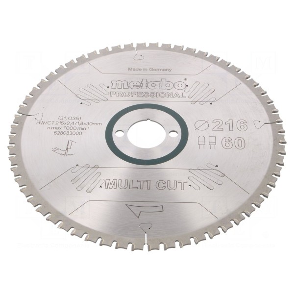 Piła tarczowa HW/CT 216mm, 60 zębów, otwór 30mm