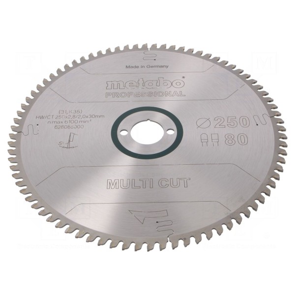Piła tarczowa 250mm, 80 zębów, otwór montażowy 30mm
