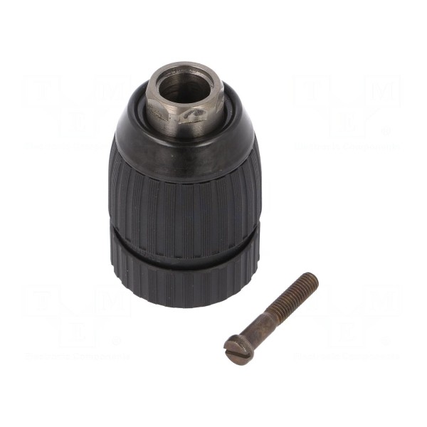 Uchwyt wiertarski przeznaczony do mocowania akcesoriów w elektronarzędziach. Urządzenie obsługuje narzędzia o średnicy chwytu w zakresie od 1,5 mm do 13 mm.