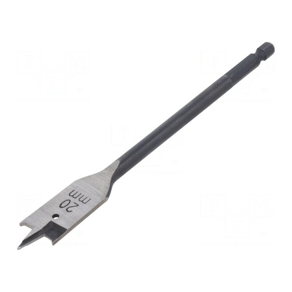 Wiertło przeznaczone jest do obróbki drewna oraz płyt wiórowych. Narzędzie charakteryzuje się średnicą roboczą wynoszącą 20mm oraz całkowitą długością 160mm.