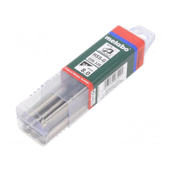 Wiertło przeznaczone do obróbki metalu, stali oraz stali stopowej, wykonane ze szlifowanej stali szybkotnącej HSS-G. Produkt charakteryzuje się średnicą 8 mm oraz całkowitą długością 117 mm, przy długości części roboczej wynoszącej 75 mm.