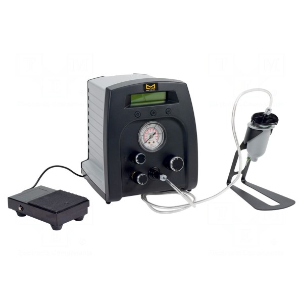 Cyfrowy dozownik METCAL DX-250 przeznaczony jest do precyzyjnego nakładania płynów przy użyciu kartuszy dozowniczych oraz strzykawek. Urządzenie oferuje czas dozowania w zakresie od 0,02 do 60 sekund oraz dwa tryby pracy: ciągły i impulsowy. Obsługuje ciśnienie wyjściowe w zakresie od 0 do 6,9 bar, wymagając przy tym zewnętrznego zasilania sprężonym powietrzem o ciśnieniu do 7 bar.