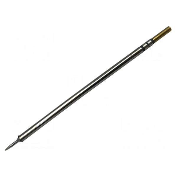 Grot z grzałką o kształcie stożka wydłużonego przeznaczony jest do wykorzystania w stacjach lutowniczych. Element charakteryzuje się wymiarem końcówki wynoszącym 1 mm oraz stałą temperaturą roboczą 357°C.