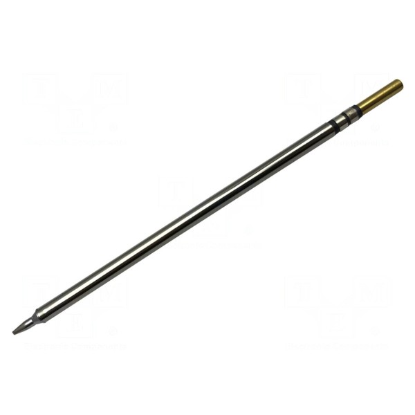 Grot lutowniczy typu wkrętak wydłużony o wymiarze 1,4 mm jest przeznaczony do pracy ze stacjami lutowniczymi. Element ten posiada wbudowaną grzałkę i został zaprojektowany do osiągania temperatury pracy wynoszącej 413°C.
