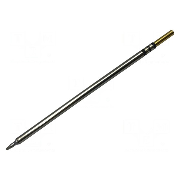 Grot lutowniczy typu wkrętak wydłużony o wymiarze 1,8mm przeznaczony jest do stacji lutowniczych. Element charakteryzuje się stałą temperaturą pracy wynoszącą 413°C. Wykorzystuje zintegrowaną grzałkę, co pozwala na bezpośrednią transmisję ciepła w procesie lutowania.
