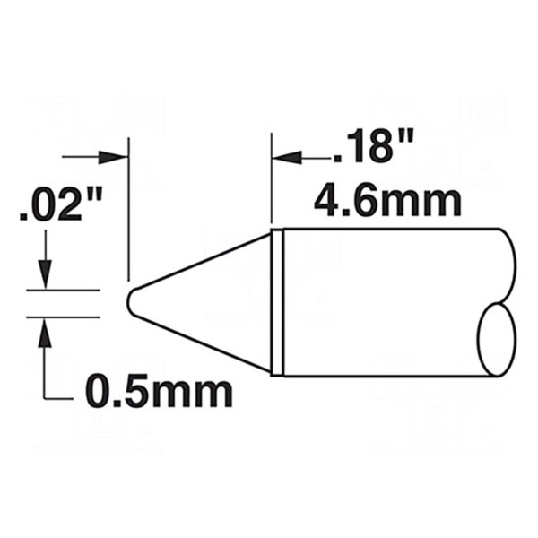 Grot z wbudowaną grzałką o kształcie stożka przeznaczony jest do wykorzystania ze stacjami lutowniczymi. Końcówka robocza posiada wymiar 0,5 mm, a temperatura pracy grota wynosi 468°C.