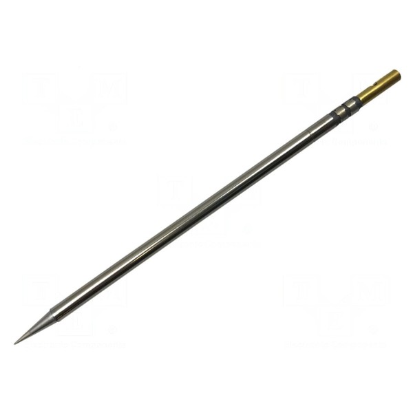 Grot z wbudowaną grzałką o kształcie stożka przeznaczony jest do wykorzystania ze stacjami lutowniczymi. Końcówka robocza posiada wymiar 0,5mm, co pozwala na precyzyjną pracę w układach elektronicznych. Element osiąga temperaturę roboczą 510°C.