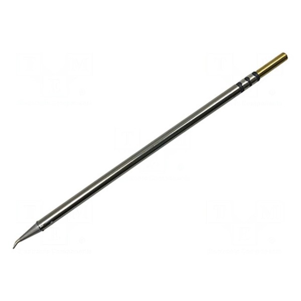 Grot lutowniczy zintegrowany z grzałką został zaprojektowany do współpracy ze stacjami lutowniczymi. Element charakteryzuje się kształtem zagiętego stożka o wymiarach 0,5x15mm oraz zapewnia stabilną temperaturę pracy wynoszącą 510°C.