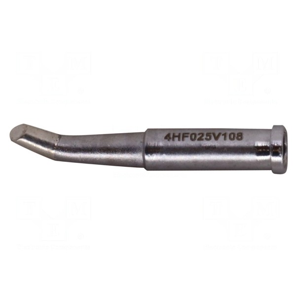 Grot przeznaczony do lutownic grzałkowych charakteryzuje się kształtem minifali o zagiętej końcówce. Wymiar elementu roboczego wynosi 2,5 mm.
