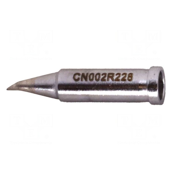 Grot przeznaczony jest do stacji lutowniczych wyposażonych w lutownice grzałkowe. Element charakteryzuje się kształtem zagiętego stożka oraz średnicą końcówki wynoszącą 0,2mm.