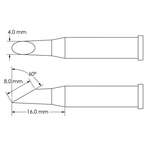 Grot do lutownic grzałkowych METCAL GT6-HF6040S charakteryzuje się kształtem typu kopytko o szerokości 4 mm. Element ten przeznaczony jest do wykorzystania w stacjach lutowniczych.