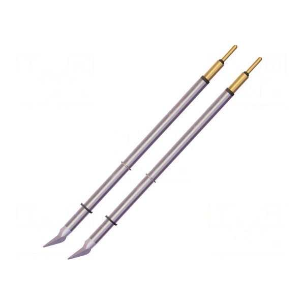 Grot lutowniczy typu zagięty stożek o wymiarach 0,2x6,8 mm przeznaczony jest do pracy z gorącymi mikroszczypcami. Element ten posiada wbudowaną grzałkę i został wykonany w technologiach Connection Validation oraz SmartHeat.